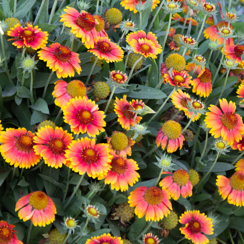 Cette variété vivace offre de magnifiques grandes fleurs, à l’allure de souci, aux couleurs chaudes variant du jaune safran au rouge brun, unies ou bicolores, avec généralement un cœur rouge foncé.