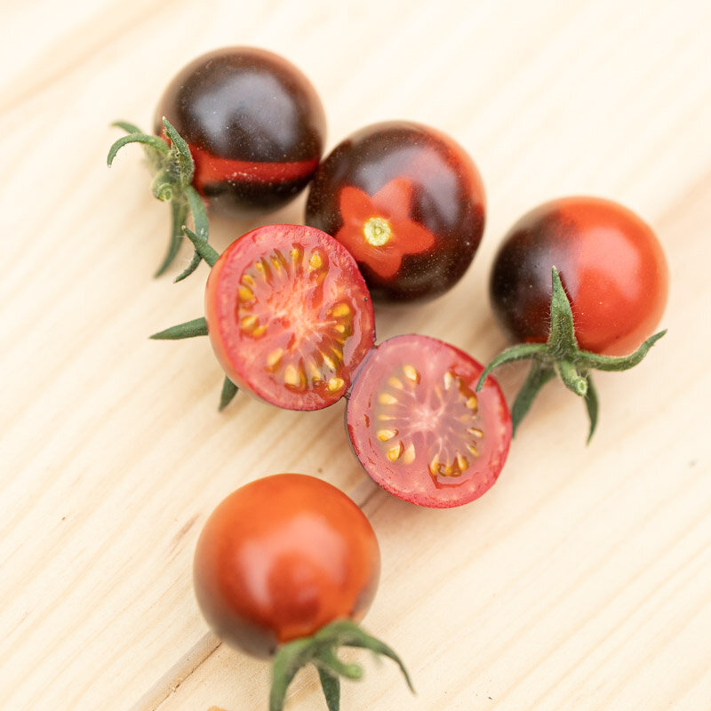 Cette variété, obtenue par Tom Wagner, offre des plantes de deux mètres de hauteur portant des tomates cerises de couleur rouge et indigo.
