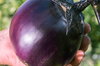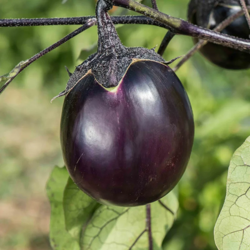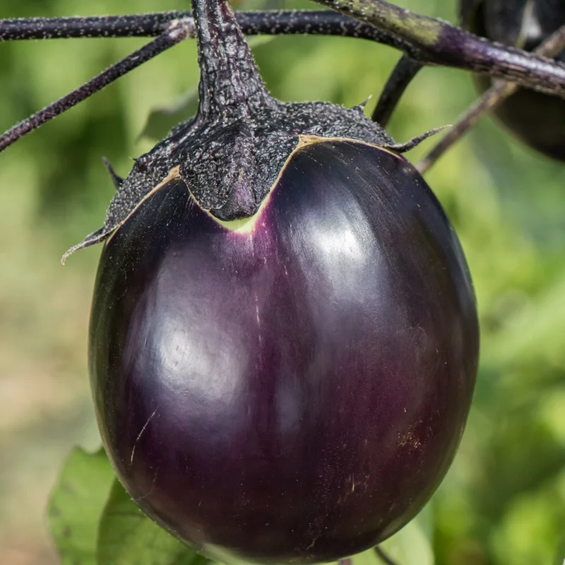 Cette variété ancienne produit des fruits ronds à l’épiderme brillant et violet foncé. Ils sont parfois colorés de blanc-vert au niveau du pédoncule et sont de bonne saveur.
