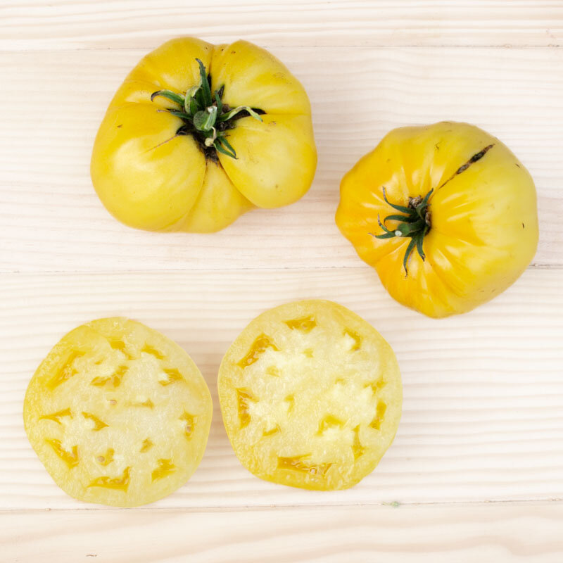 Cette variété ancienne, très originale, a un épiderme et une chair de couleur blanc crème. Les fruits ronds et légèrement aplatis sont assez charnus et font 250 grammes avec peu de graines. La saveur est extrêmement douce en raison d’une teneur élevée en sucre.