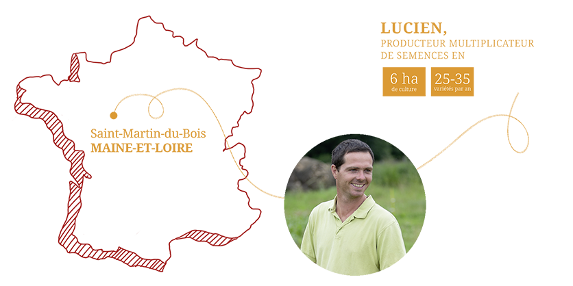 « Nous produisons des semences de plantes potagères et d’engrais vert, dans le Haut Anjou, sur environ 6 ha, dont 8 000 m2 sous abris. Le reste de l’exploitation, un peu moins de 20 ha, accueille des engrais verts et des prairies entrant dans la rotation. Historiquement la ferme produit des semences potagères depuis 1996 et depuis mon retour en 2012, après un parcours comme chargé d’étude eau et environnement, j’y ai développé l’atelier de semences et l’ai convertie en agriculture biologique.